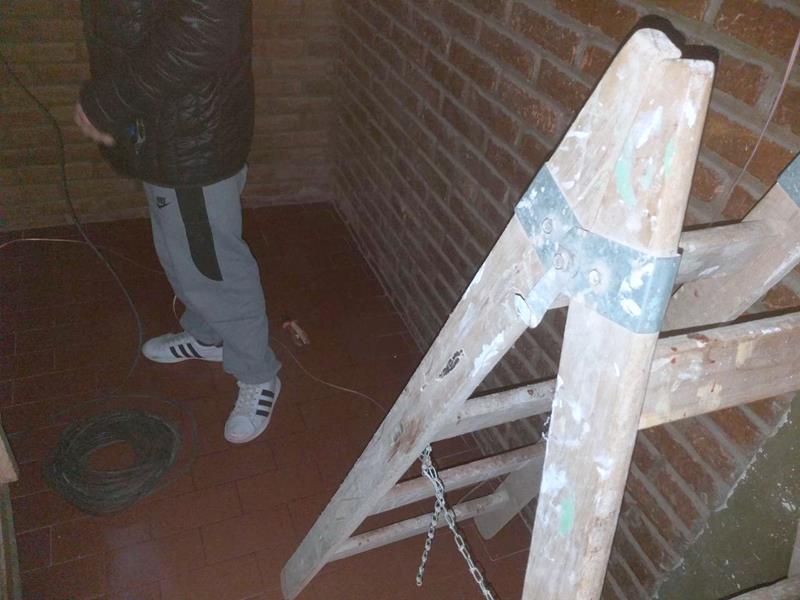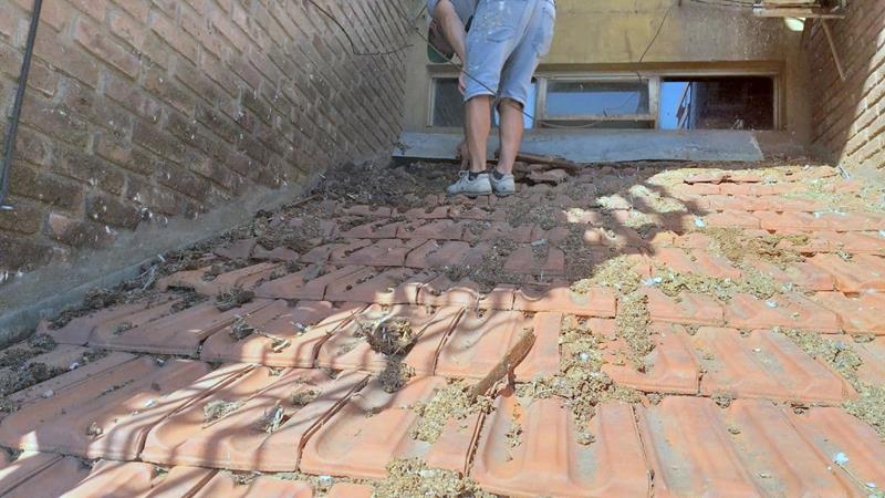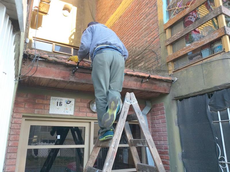 Reparacion techo palier planta baja edificio 14 y colocacion de veneno rociando fedona.