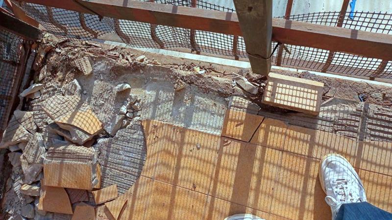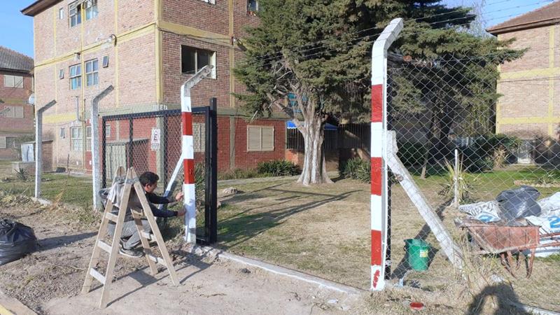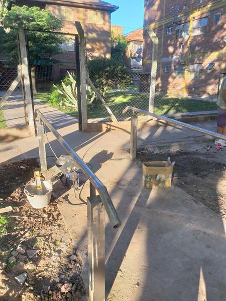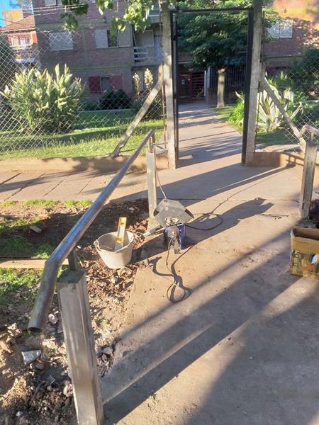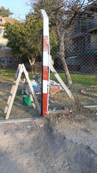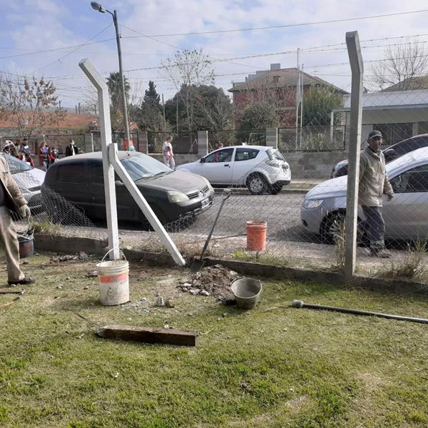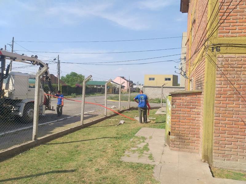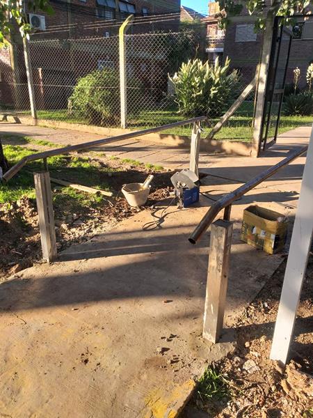 Reparacion cambio postes olimpicos lado aguero frente edifcio 8