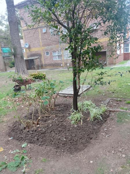 Poda frete edificio 10 y colocacion plantas frente edificio 15