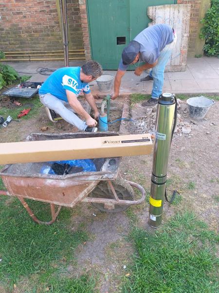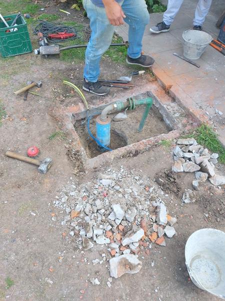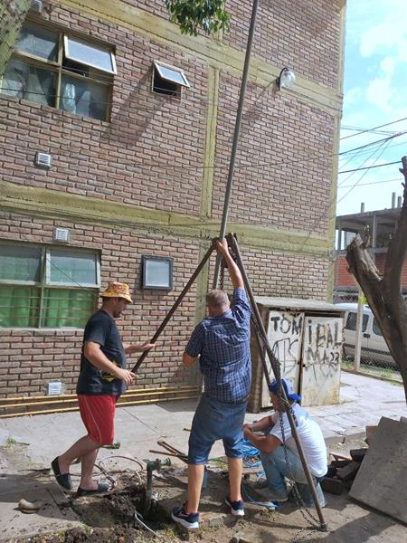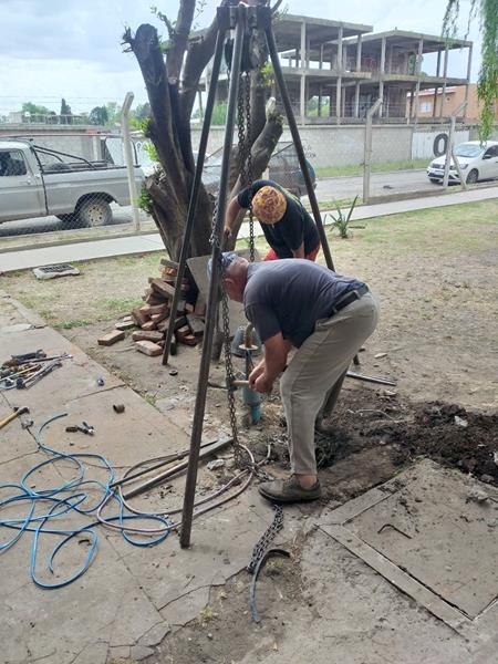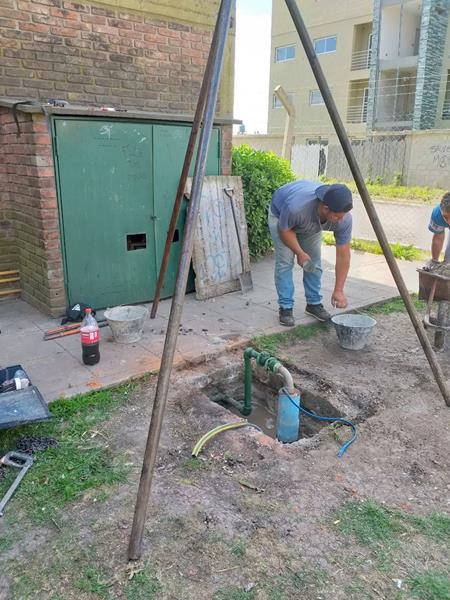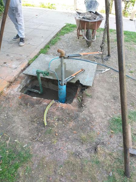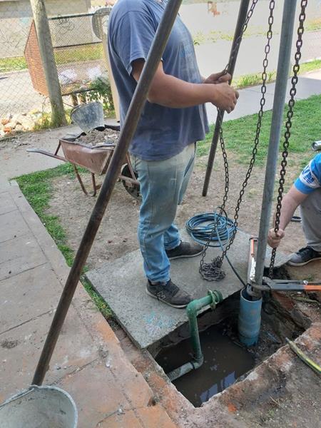Cambió de bomba sumergible y agregado de otro caño más por baja de napas de agua, modificación conexión y extracción cabina de material, modificación de tablero el edifico 16.