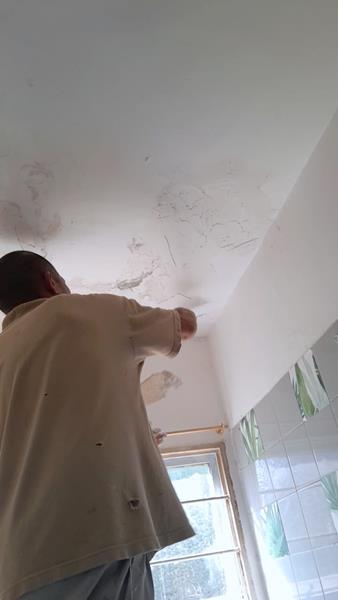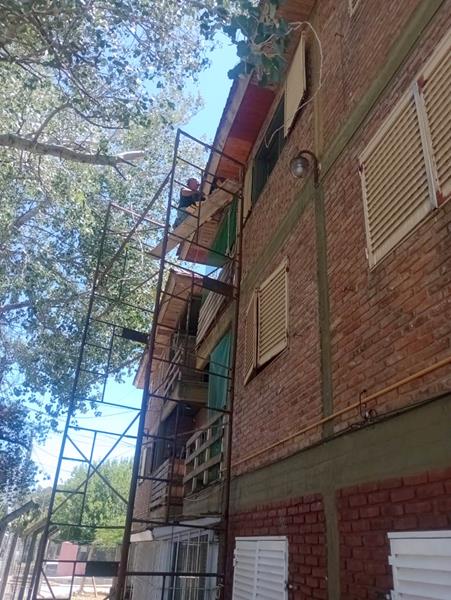 Reparando mampostería por perdida de agua del edificio 8 departamento 6 cocina.