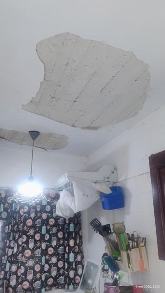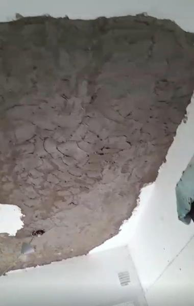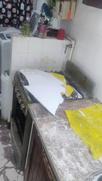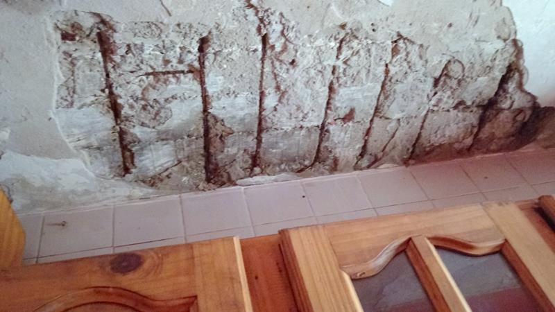 Reparando mampostería por perdida de agua del edificio 5 departamento 3 cocina.