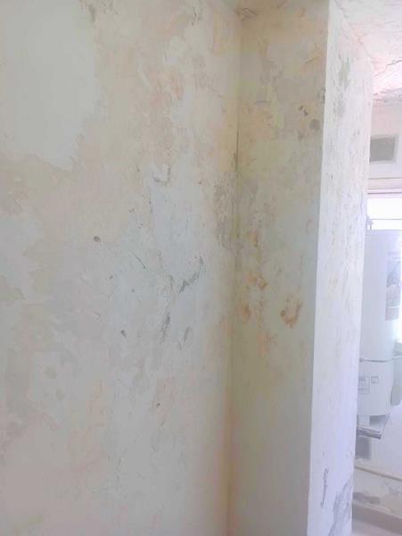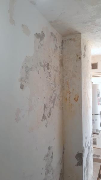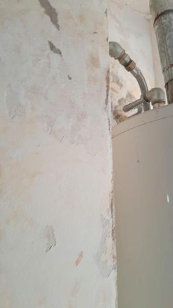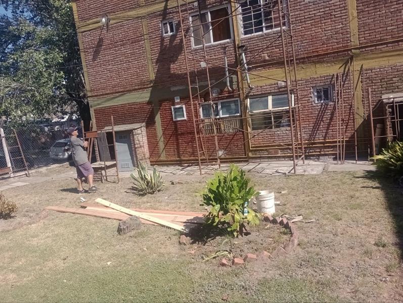 Reparando mampostería por perdida de agua del edificio 8 departamento 6 cocina.