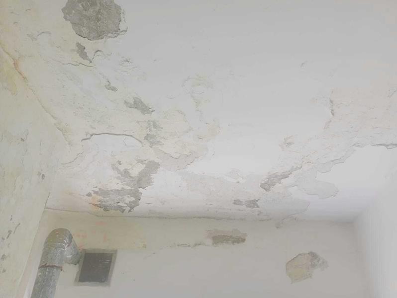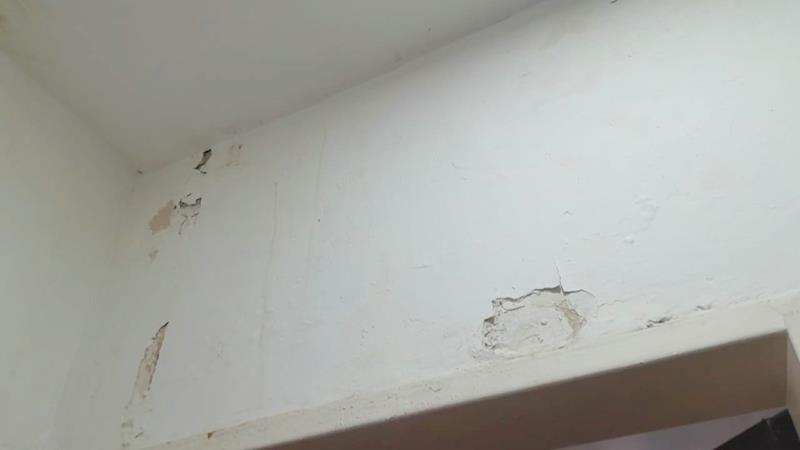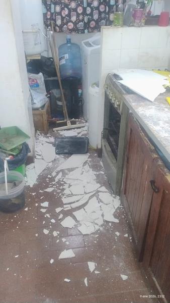 Reparando mampostería por perdida de agua del edificio 5 departamento 3 cocina.